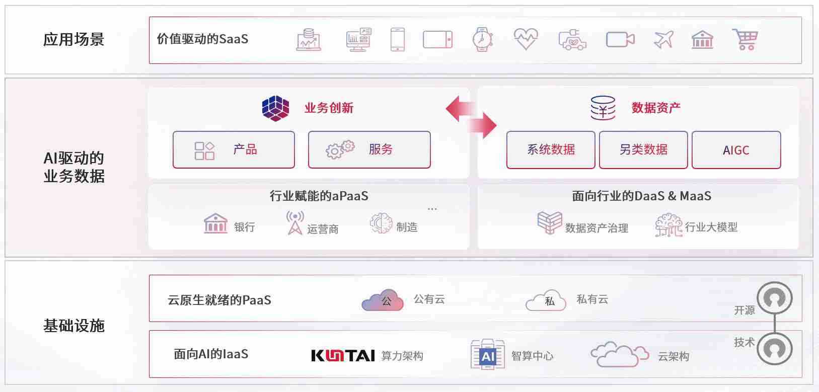 数字时代,,,围绕企业数字化转型的关键要素,,,尊龙数码开创性的提出数云融合战略和技术体系框架,,,着力在云原生、、数字原生、、、AI原生和信创产业上架构产品和服务能力,,为处在不同数字化转型阶段的快消零售、、、汽车、、、金融、、、医疗、、、、政企、、、、教育、、、、运营商等行业客户提供泛在的敏捷IT能力和融合的数据驱动能力,,构建跨界融合创新的数字业务场景和新业务模式,,,助力企业级客户建立面向未来的核心能力和竞争优势,,,,全面推动社会的数字化、、、、智能化转型升级。。。